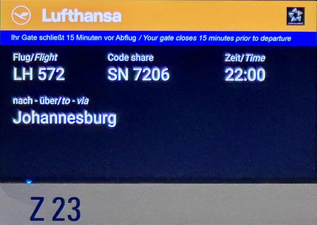 Vorgestern machten wir uns auf den Weg nach Johannesburg. Der Regionalzug nach München und die S-Bahn zum Flughafen waren erstaunlich pünktlich, sodass wir am Flughafen genügend Zeit hatten. Der Zubringerflug LH117 nach Frankfurt, eine B787-9, überraschte uns mit einem völlig unerwarteten Flugerlebnis. Die kurzfristige Umbuchung unserer Sitzplätze war dieses mal kein Ärgernis, denn: wir durften die neue Allegris Business Class testen!