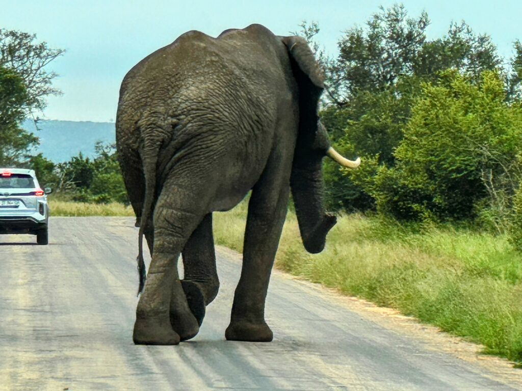 Zum ersten Mal im Kruger Park konnte ich die sehr seltenen Wildhunde sehen. Sechs Wildhunde blockierten lässig die Straße, bevor sie, wild hüpfend, im hohen Gras verschwanden.