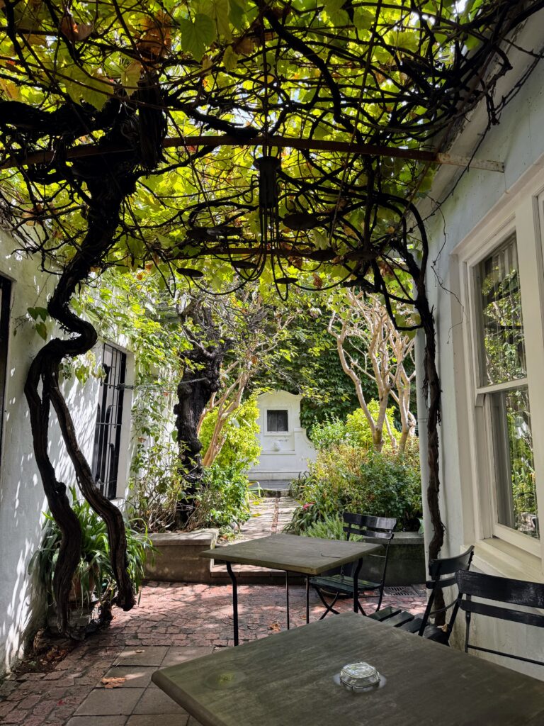 Kleiner Spaziergang ins Boo-Kaap Viertel, dem Zentrum der kapmalaischen Community. Auf dem Rückweg noch ein bisschen Sushi mitgenommen, das ich dann ganz entspannt im Innenhof genießen konnte, denn die Sonne war mit aller Kraft zurück gekommen.